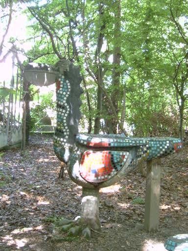 Bruno-Weber est un artiste suisse. Cela fait plus de 40 ans qu'il a commencé à faire des sculptures à thèmes sur sa demeure et dans sa maison. C'est une visite qui en vaut vraiment la peine. L'entrée n'est pas chère du tout et on y passe un agréable moment. L'exposition se prolonge également dans la forêt. Depuis que ces photos ont été prises, de nouvelles mosaïques ont été créées. Cliquez sur ce lien pour vous rendre directement sur leur site internet.